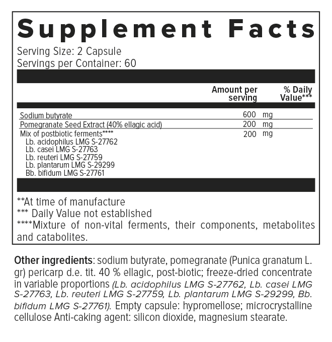 The benefits of taking My Postbiotics daily are multiple. Its ingredients (butyric acid, metabiotic and ellagic acid) have the following beneficial properties:
